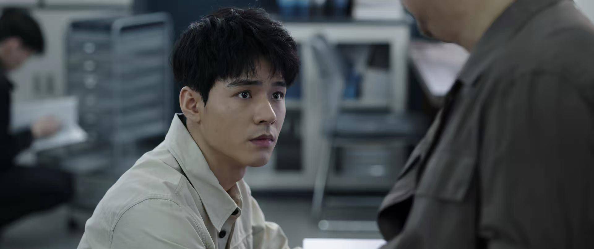 有场实验室分析微量物证的戏,他眉头微蹙,眼神专注地盯着显微镜,手指轻轻调整旋钮,连呼吸都放得很轻,那种专业严谨完全不像演出来的。
